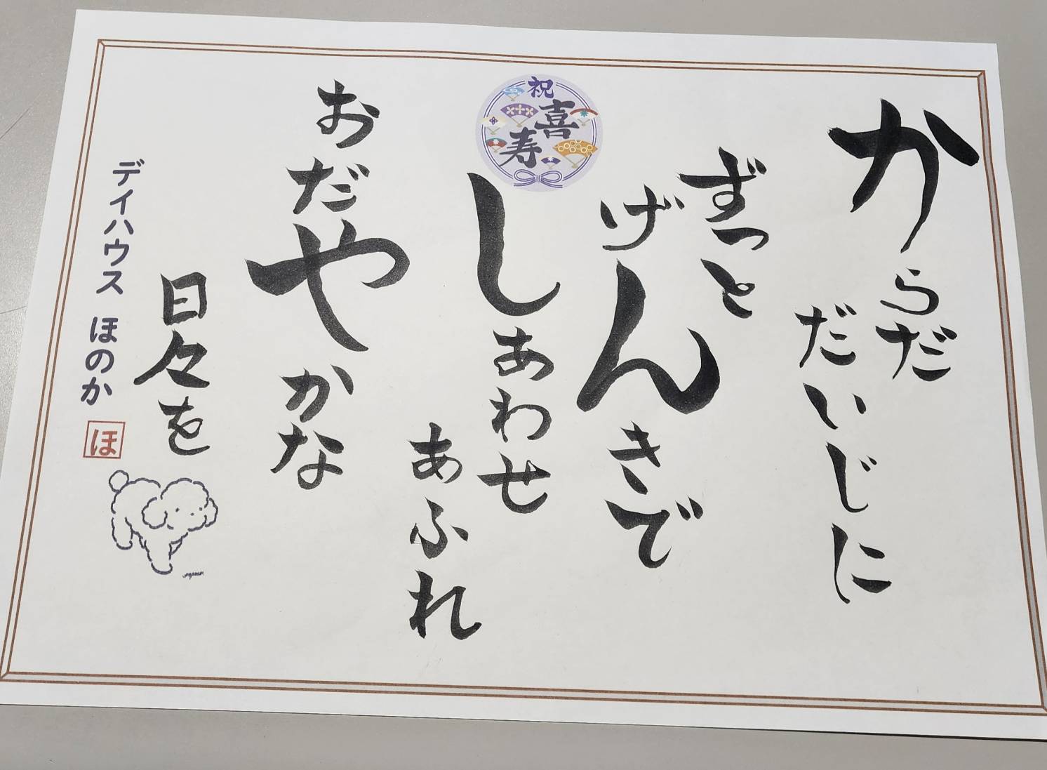 今年、喜寿(77歳)を迎えられたご利用者様のお祝いを行いました。